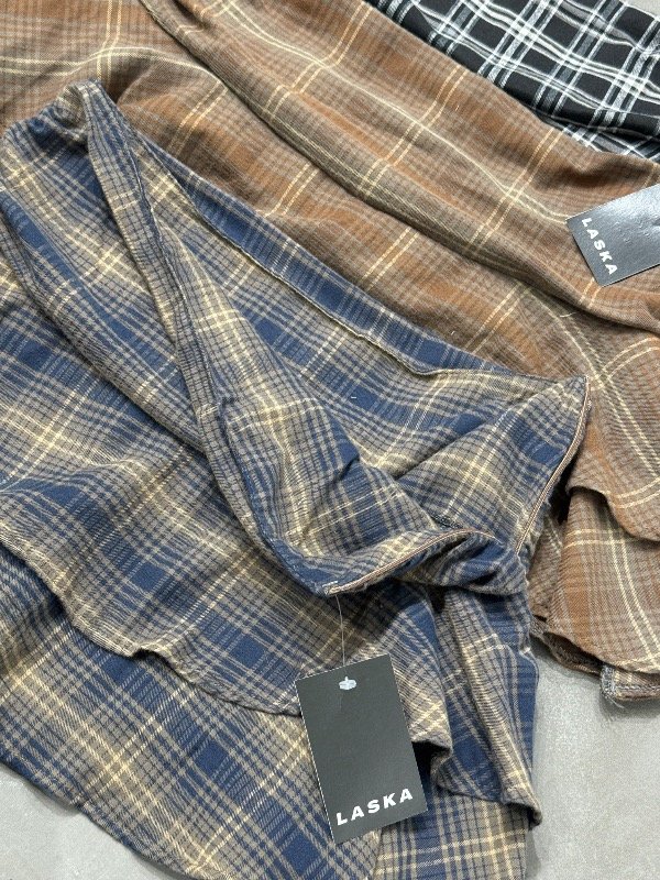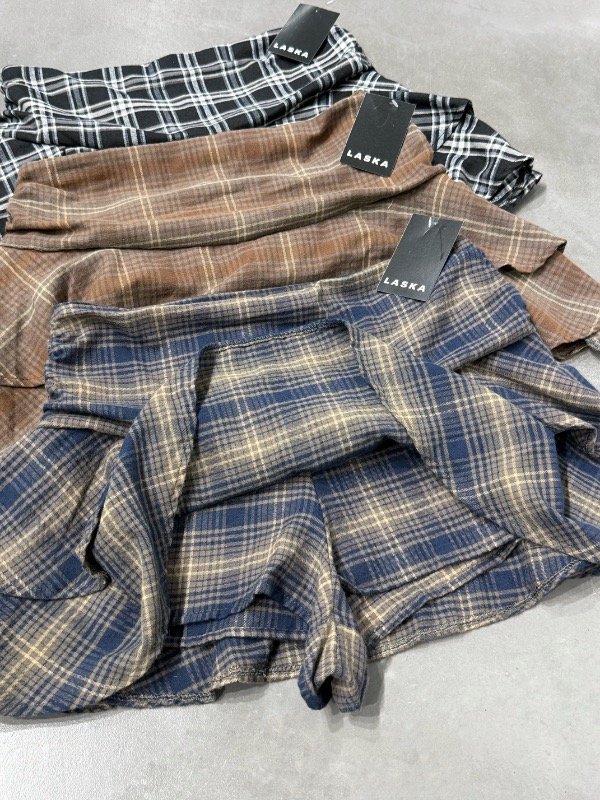 Skort cuadrille de tela Viyela con frunces laterales, cierre en un costados, doble volado y short por debajo. Disponible por talle. Medidas aprox: