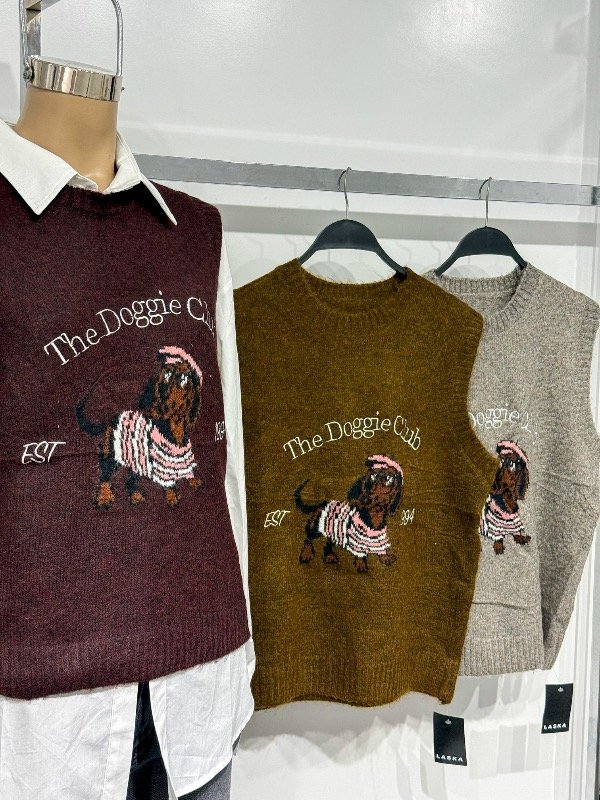 Chaleco de lanilla súper calentito con estampa de perro salchicha. Talle único, abarca S/M