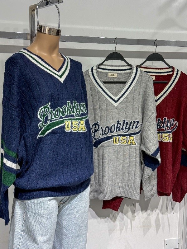Sweater de lanilla suave y súper abrigada con cuello en V. Talle único, abarca hasta un L.