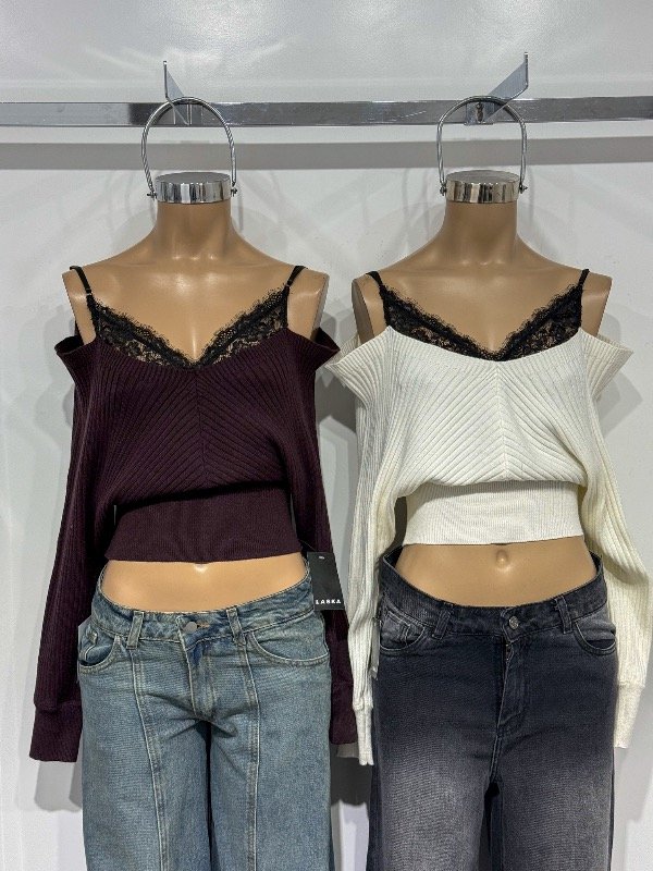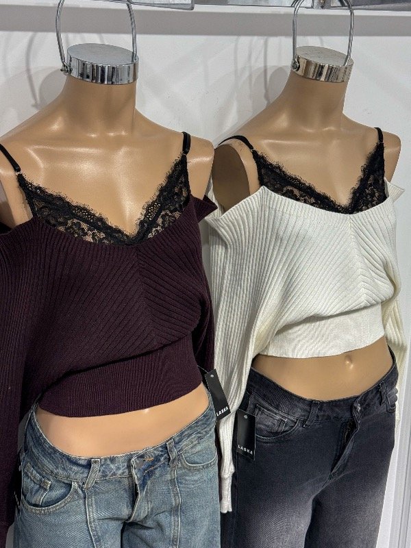 Sweater de hilo calidad premiun cuello bote. Simula tener un bralett por debajo con reguladores en hombros. Talle único, abarca S/M.
