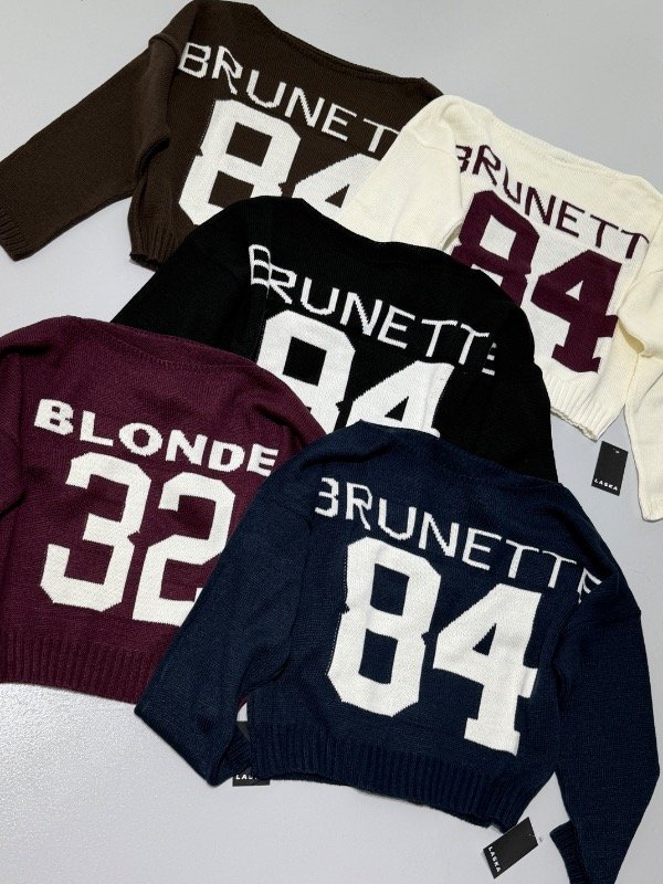 Sweater de hilo cuello ancho irregular con estampa. Talle único, abarca S/M