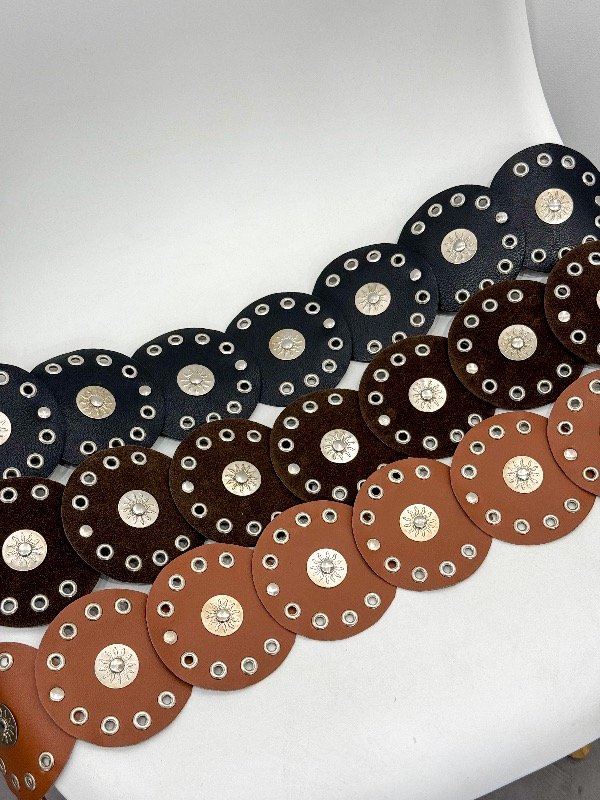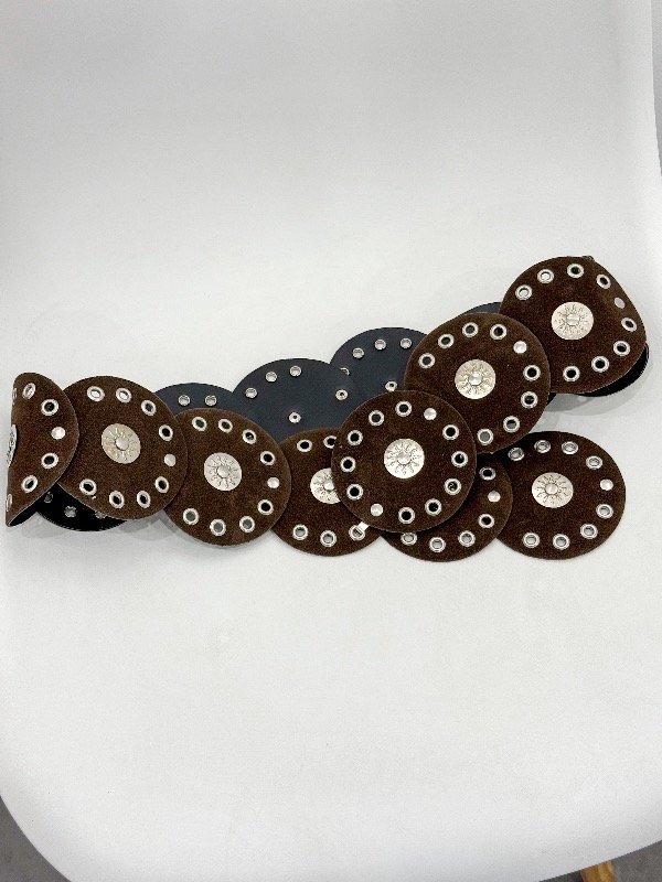 Faja de gamuza con arandelas y hebilla mini de sol. Talle único (abarca del 34 al 42)