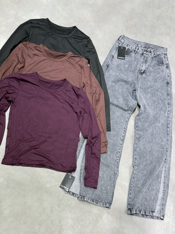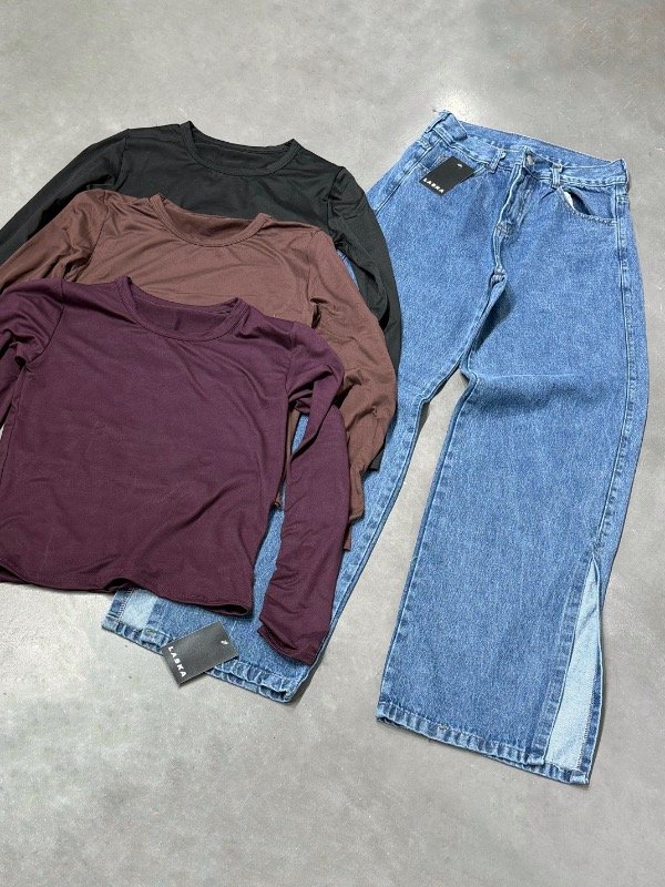 Combo de wide Leg con tajo en los laterales + polera clásica de modal soft.