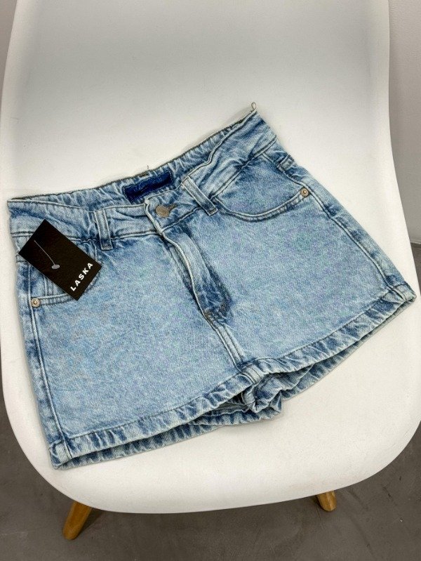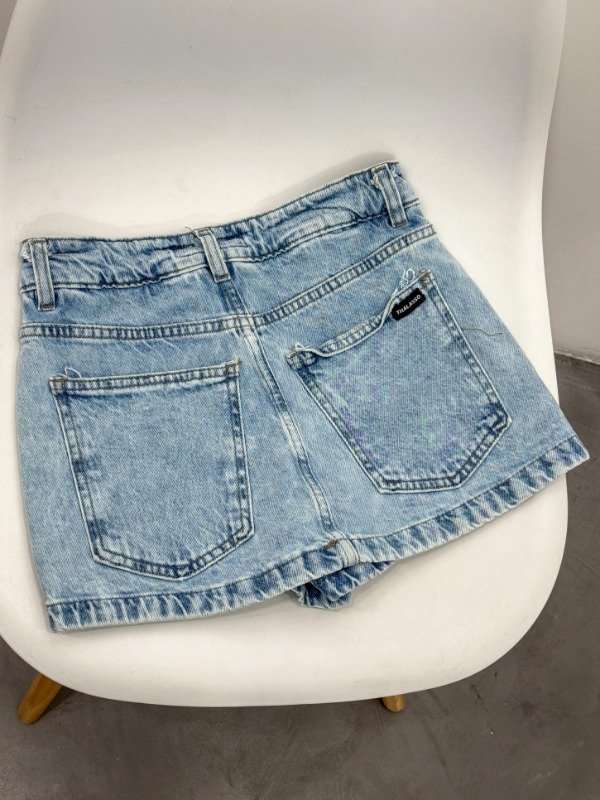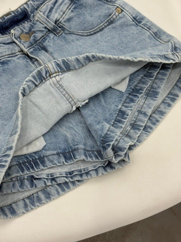 Skort denim tiro alto color celeste con short por debajo de la pollera.