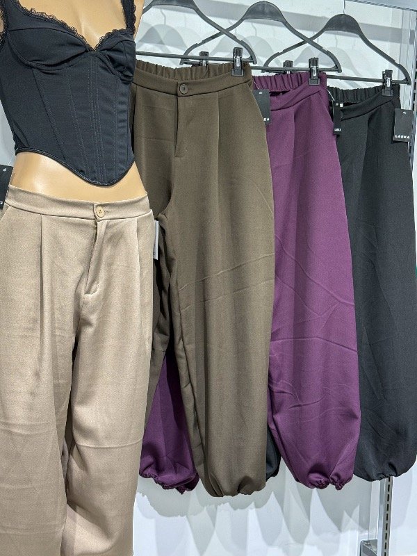 Pantalón sasgrero balloon con bolsillos, cierre,botón y elástico en la parte trasera. Disponible en talle M (38). Medidas aprox: CINTURA 36cm - TIRO 30cm - LARGO 95cm