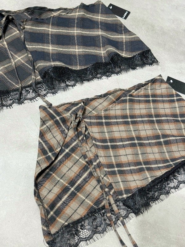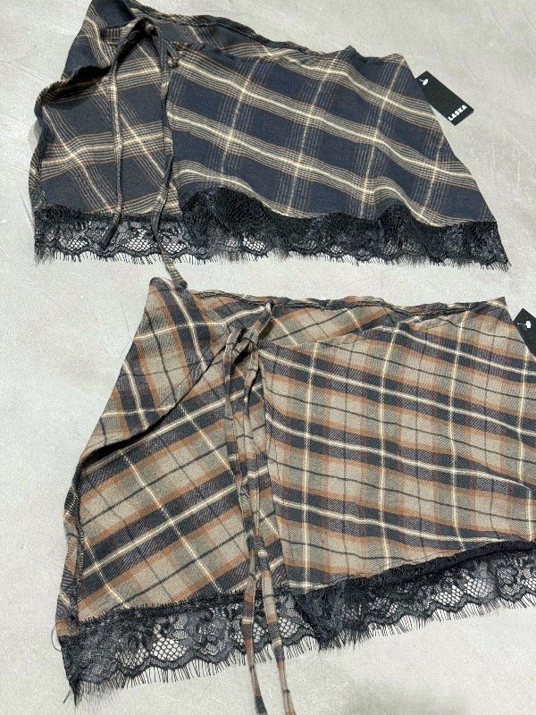 Pareo escocés con puntilla negra. Ideal para usar por debajo de un pantalón denim, babucha, etc. talle único, abarca hasta un 40.