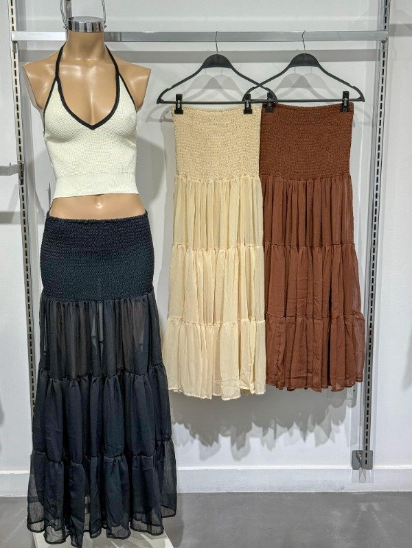 Pollera larga de Gaza drapeada. Talle único, abarca 36/38. Dato: la podes usar también como vestido.