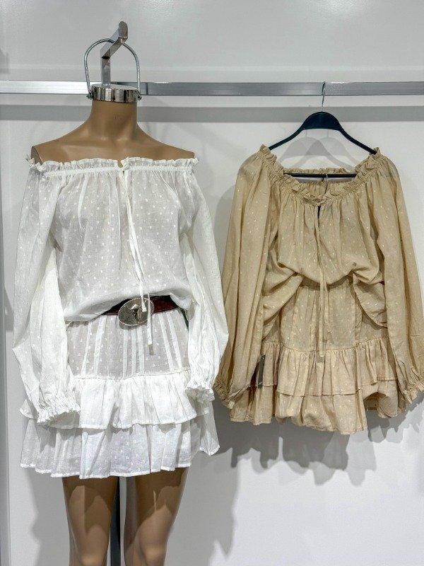 Blusa cuello bote con manga y elastico. Talle único, abarca hasta un L.