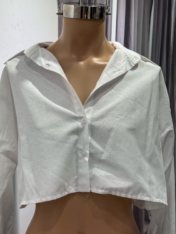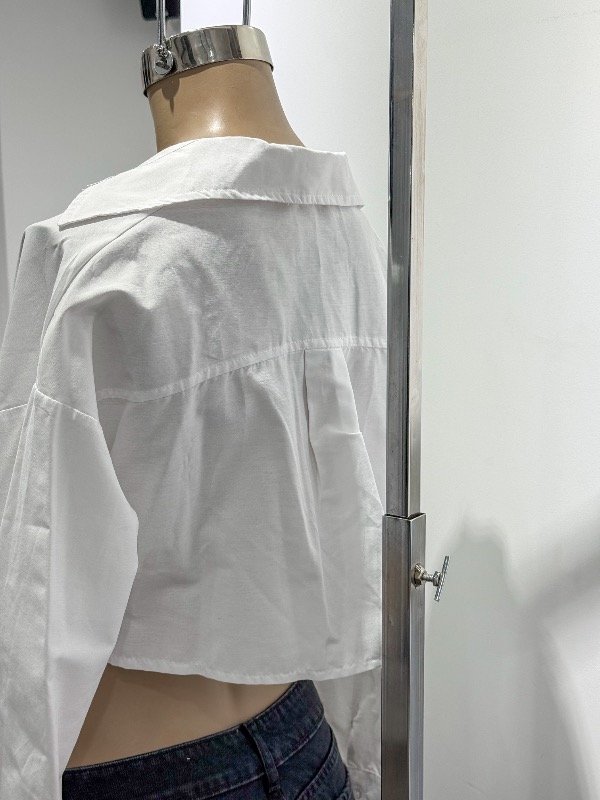 Camisa poplin corta Over con botones. Disponible en S y M. Medidas aproximadas:
