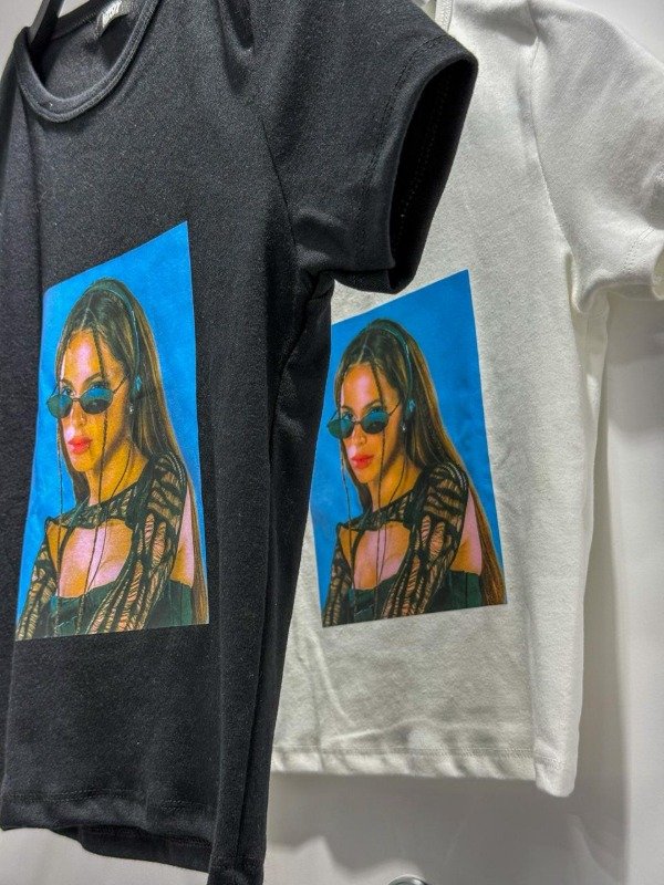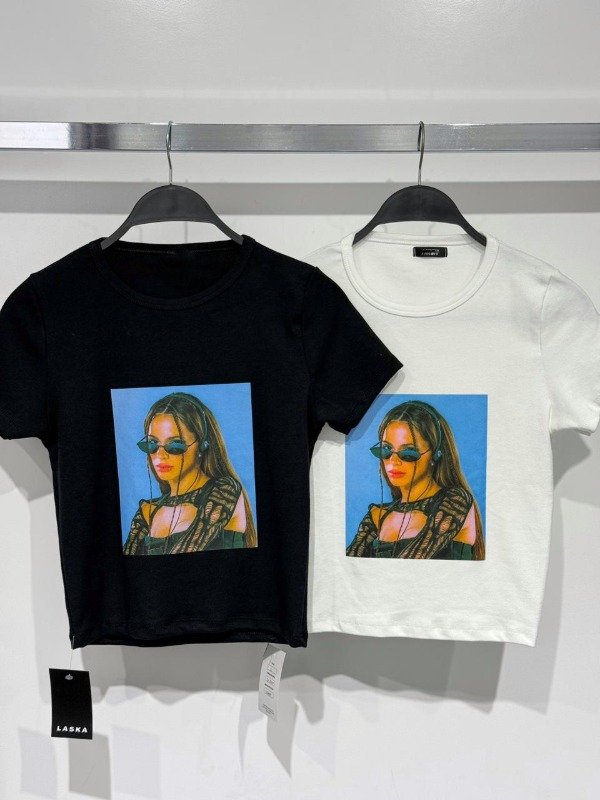 Remera Crop de algodón elastizada al cuerpo con estampa. Talle único, abarca S/M