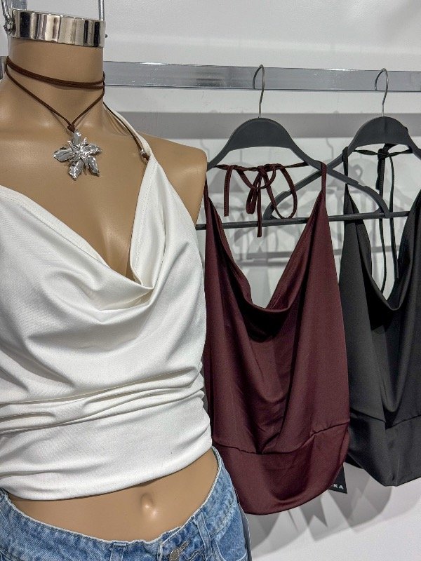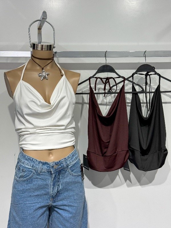 Top de microfibra cuello buche con tira para anudar en el cuello. Talle único, abarca S/M
