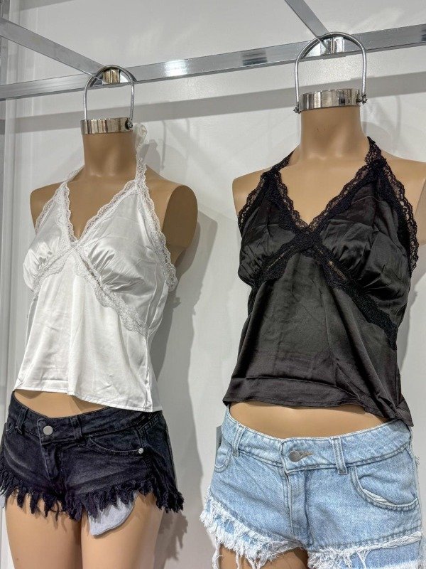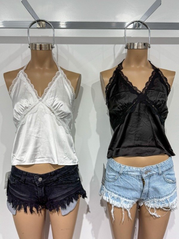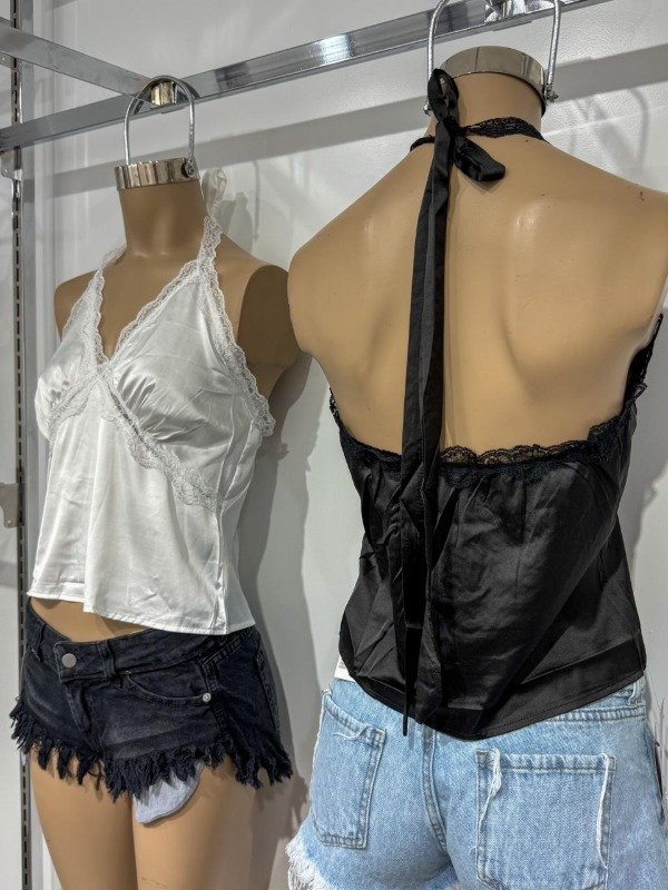 Top de Sedita con encaje y tira para anudar en la espalda. Talle único, abarca S/M.