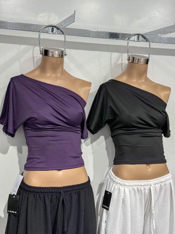 Top de microfibra cuello irregular manga corta. Talle único, abarca S/M