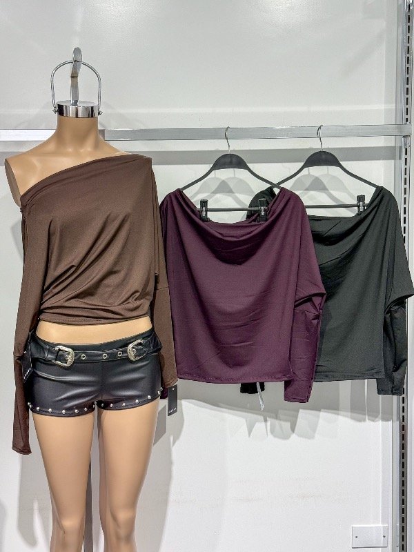 Top de microfibra globo manga larga con hombro caído. Talle único, abarca S/M