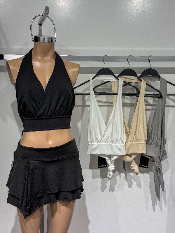 Top de microfibra cruzado con tira para anudar en la espalda. Talle único, abarca S/M