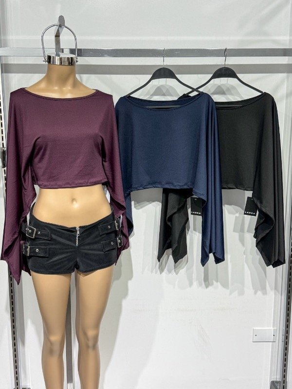 Top de microfibra tipo capita manga murciélago. Talle único, abarca S/M
