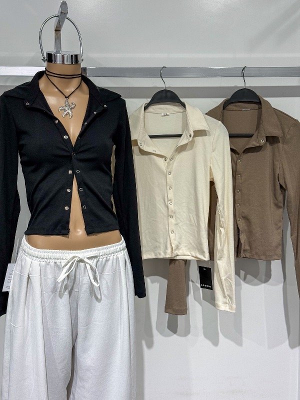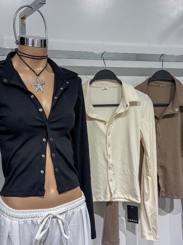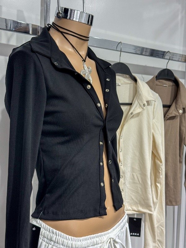 Top de algodón manga larga con broches delanteros. Talle único, abarca S/M