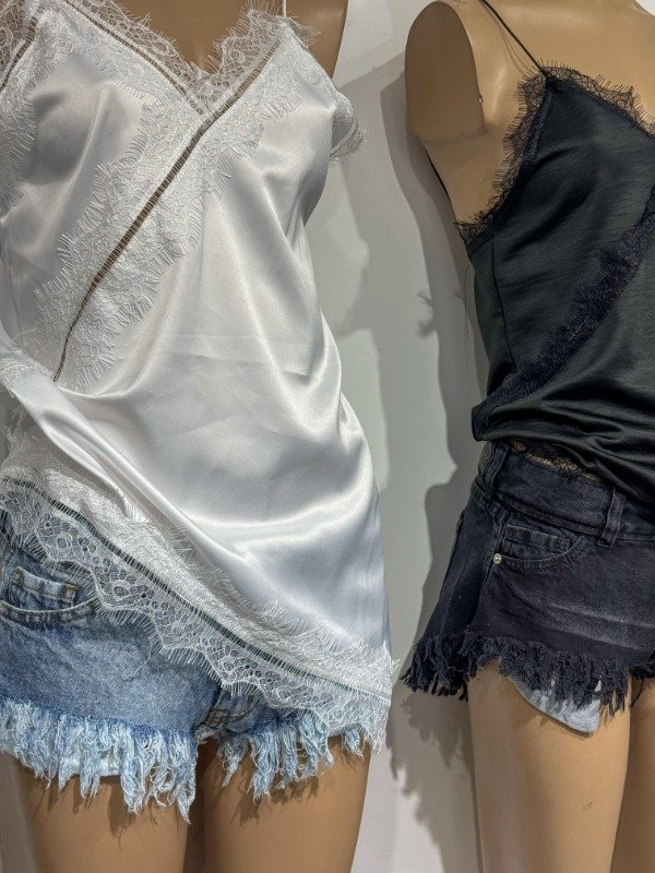 Top de satén irregular con puntilla. Talle unico, abarca S/M