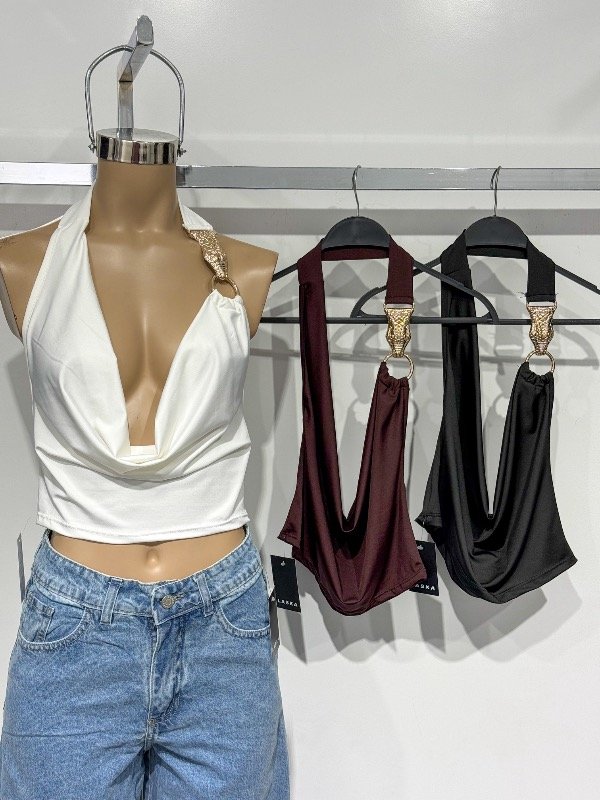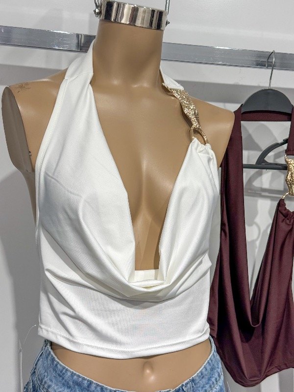 Top de microfibra cuello buche con accesorio de metal dorado en forma de serpiente. Talle único, abarca S/M