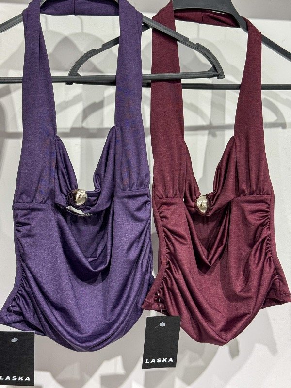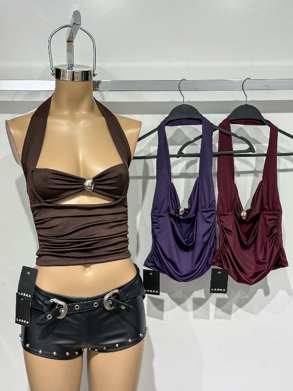 Top de microfibra con banco y hebilla redonda. Talle único, abarca S/M.