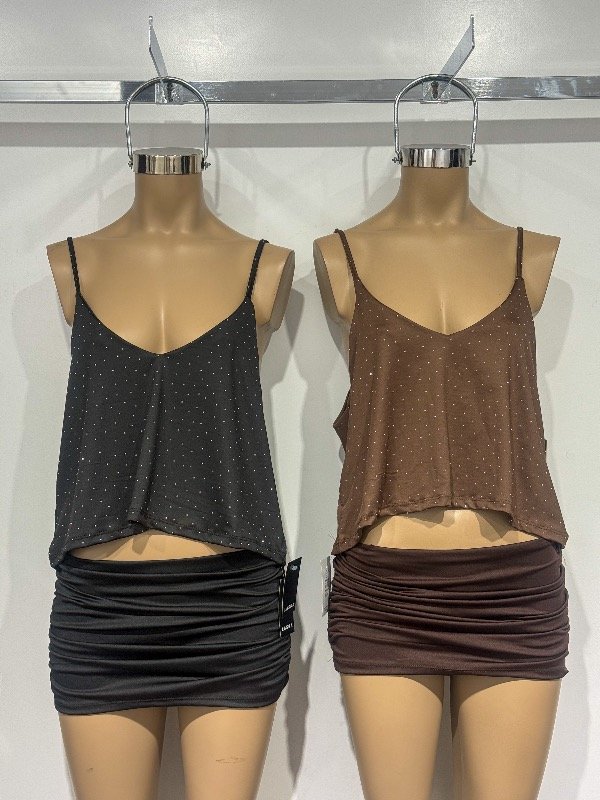 Top de microfibra holgado con tiras y strass. Talle único, abarca un M