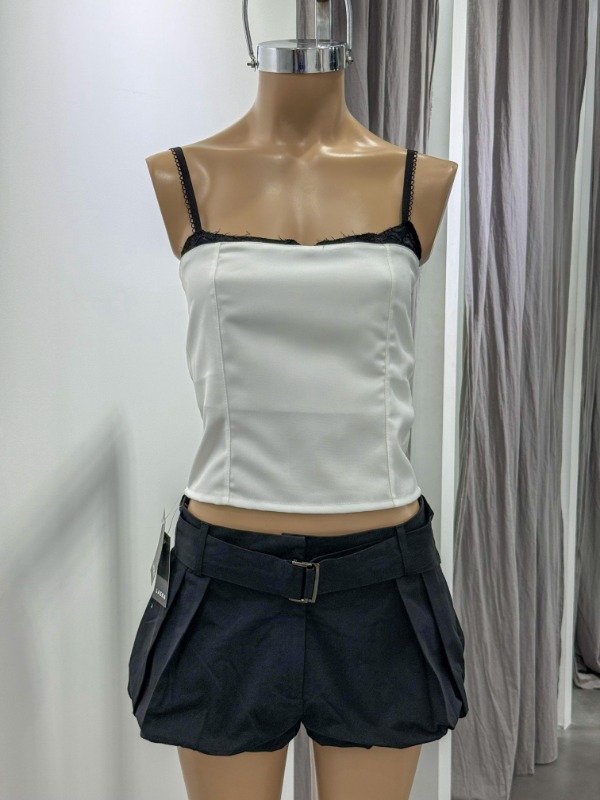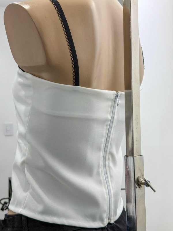Top sastrero superpuesto con cierre trasero. Medias aprox: