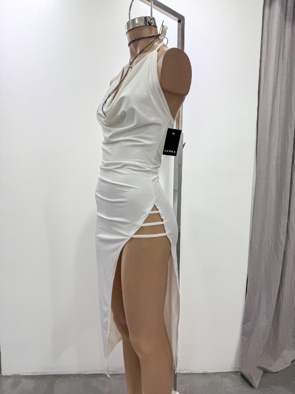 Vestidos de microfibra con cuello buche y rajo delantero. Talle único, abarca S/M.