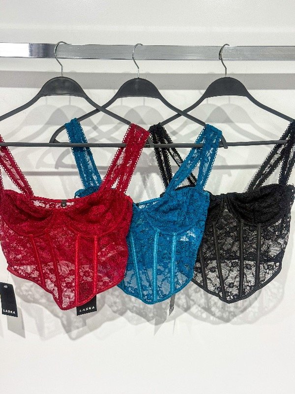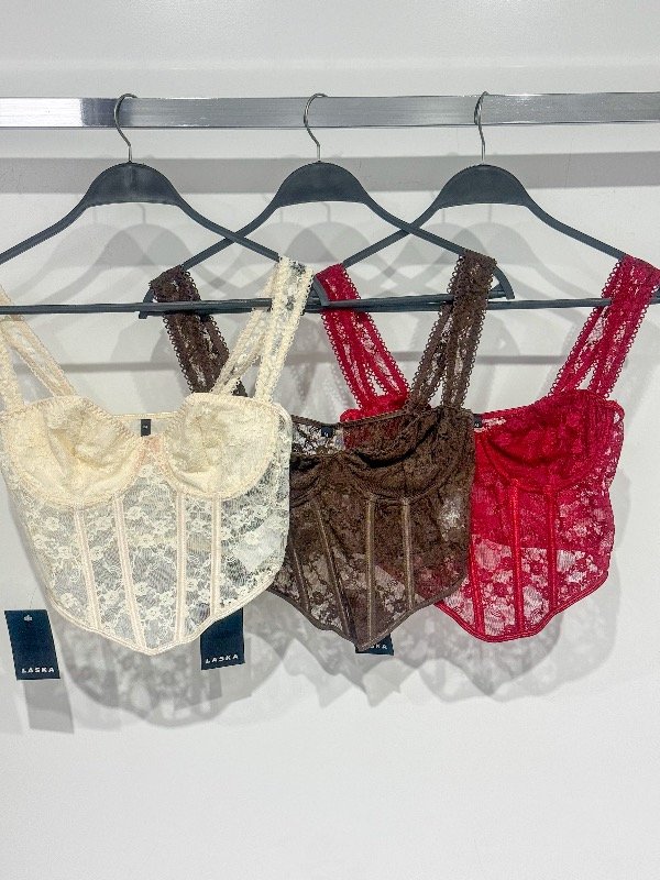 Corset de encaje con forro en el busto, aro y ballenas. Disponible en talle M, abarca 85/90.