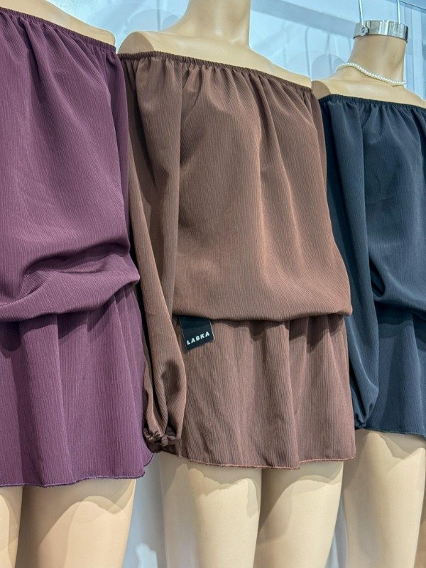 Vestido de gasa cuello buche con elastico en la parte superior y en la cintura. Talle unico, abarca un M.