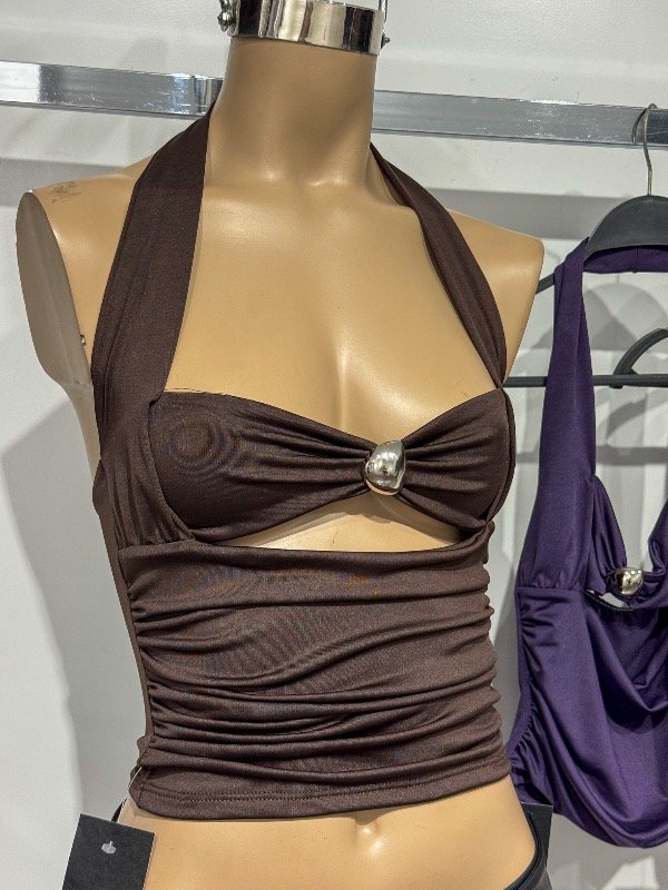 Top de microfibra con bando y hebilla redonda. Talle único, abarca S/M.