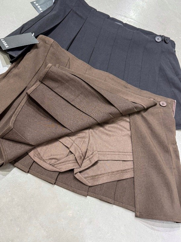 Skort sastrero con tablitas, botones laterales, solapa y short por debajo de microfibra. Talle único, abarca 36/38. Medidas aprox: CADERA 37cm LARGO 29cm