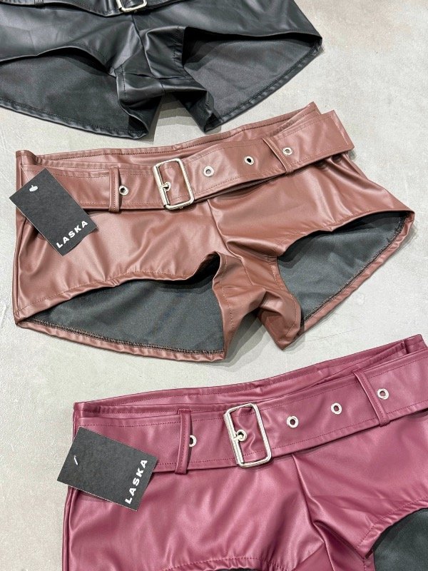 Short engomado ultra tiro bajo con cinturón. Talle único, abarca 36/38. Medidas Aproximadas: CADERA 39cm LARGO 26cm TIRO 27cm