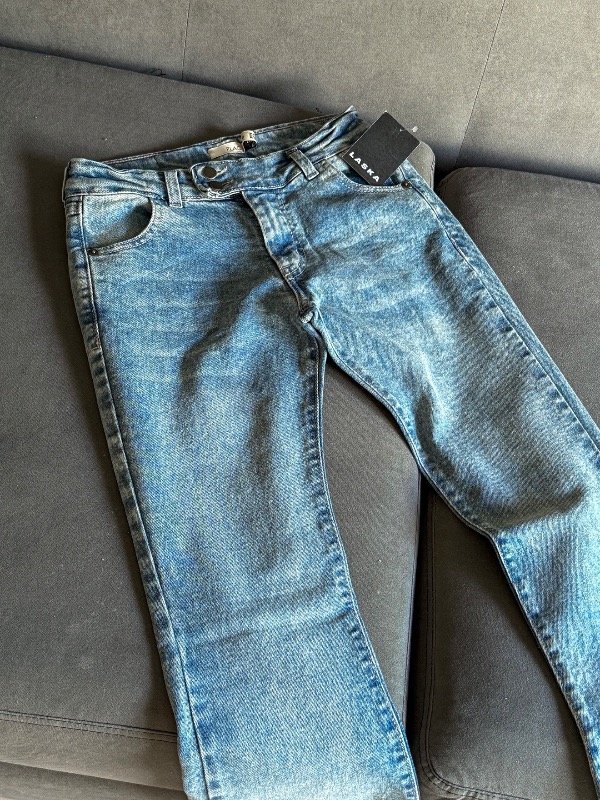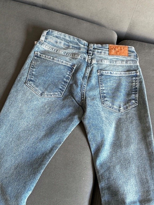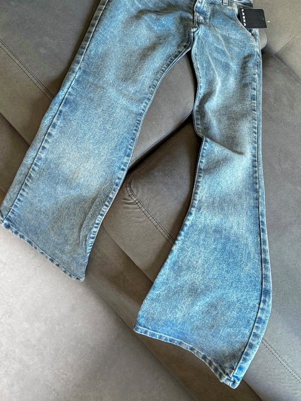 Pantalon Denim Oxford color celeste oscuro tiro bajo con doble botón cruzado. Bolsillos traseros. Disponible por talles. Medidas aprox: