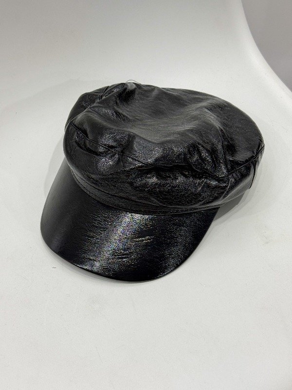 Boina de ecocuero brilloso clásica. Talle único, tiene tiras para ajustar a la cabeza por dentro de la boina.