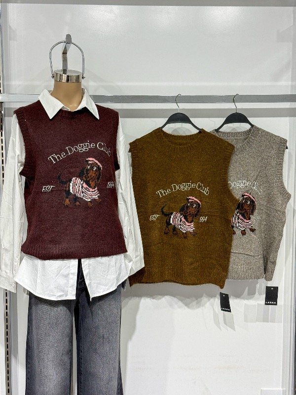 Chaleco de lanilla súper calentito con estampa de perro salchicha. Talle único, abarca S/M