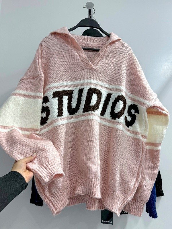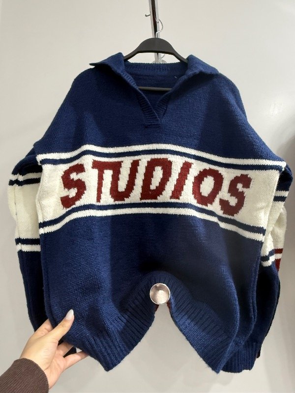 Sweater chomba de lanilla gruesa con estampa delantera. Talle único, abarca hasta un L