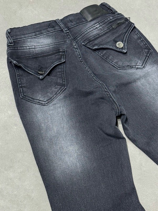 Pantalón Oxford elastizados tiro medio/alto color negro localizado con bolsillos, boton y solapa en la parte trasera. Disponible por talles. Medidas aprox: