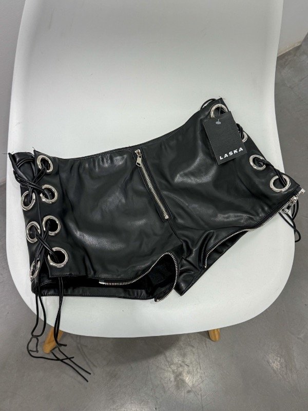 Short engomado grueso tiro bajo con cierre delantero y arandelas con cordones laterales. Disponible por talle. Medidas aproximadas: