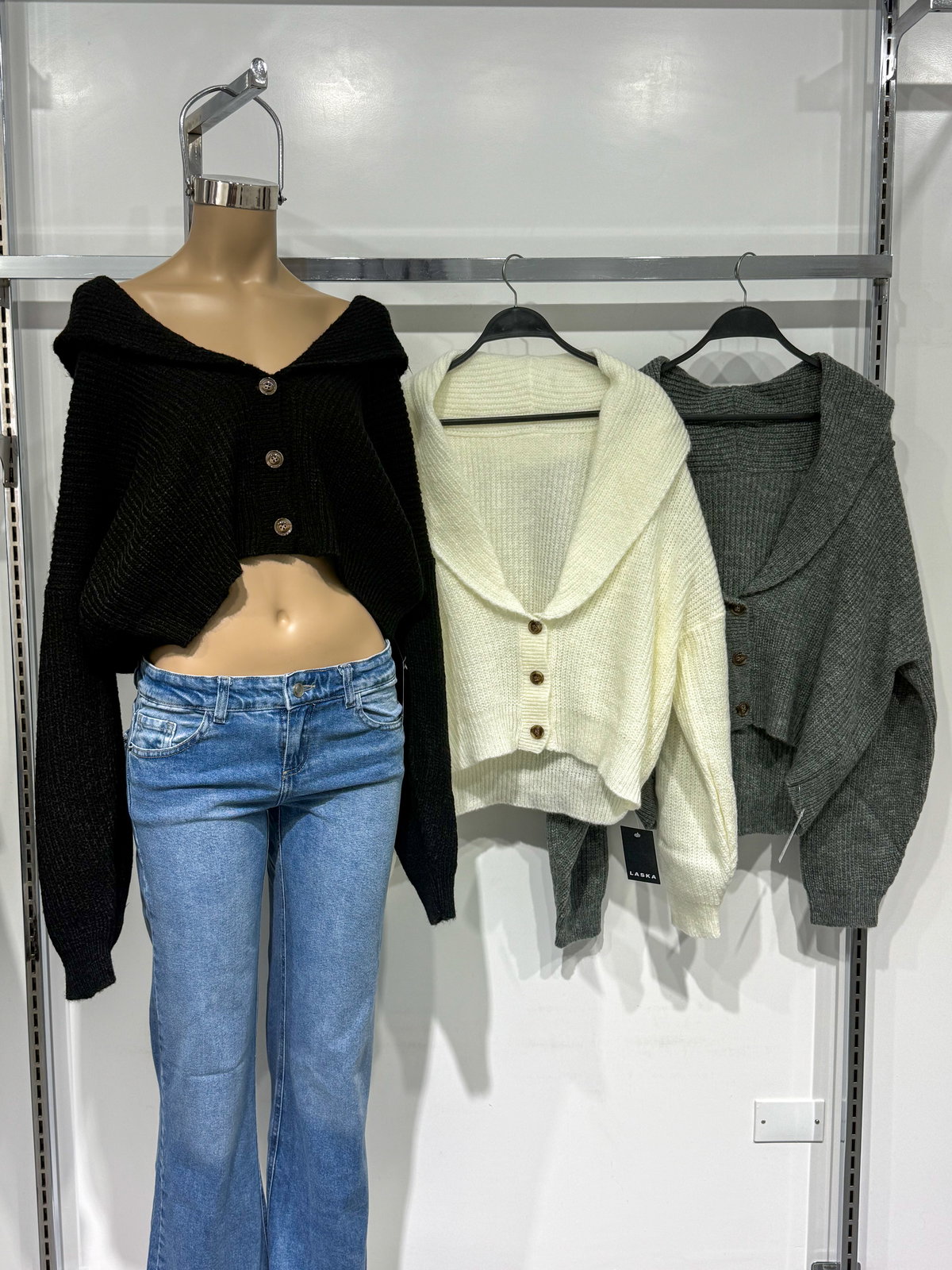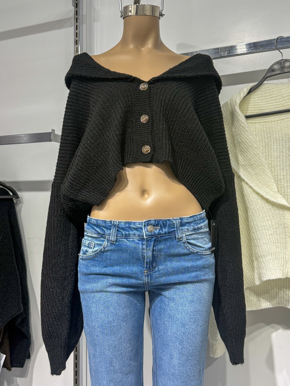 Sweater de lana oversize con tres botones. Talle único, abarca hasta un XL.